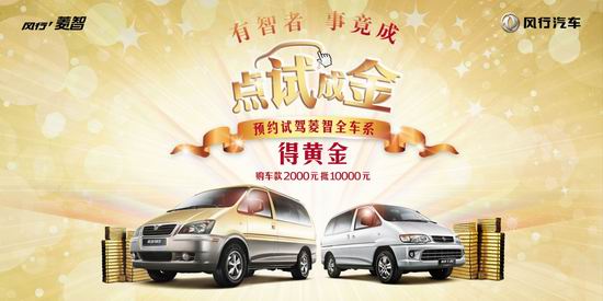 即日起至12月31日,消費(fèi)者只要在菱智官網(wǎng)上填寫(xiě)個(gè)人資料報(bào)名試駕菱智任一車(chē)型,即有機(jī)會(huì)獲得足金金條和純金飾品!消費(fèi)者親臨4S店訂車(chē),更有豐厚黃金禮輕松到手。活動(dòng)詳情,可聯(lián)系當(dāng)?shù)亟?jīng)銷(xiāo)商咨詢(xún),或登錄菱智官方網(wǎng)站http://lingzhi.fxauto.com.cn/campaign/20111017_lz16/ac.html查詢(xún)。菱智全車(chē)系黃金組合車(chē),總有一款是適合的!