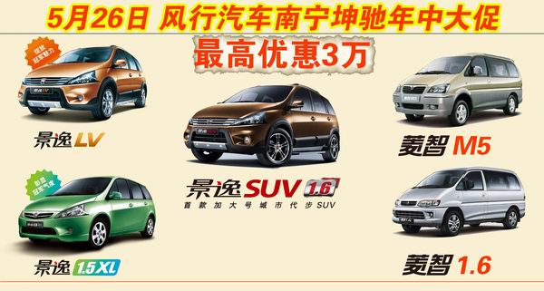 5月26日,風(fēng)行汽車南寧坤馳全系車年中大促,