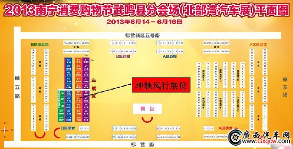 “壯家美食 武鳴名品” 2013年南寧(武鳴)消費(fèi)購(gòu)物節(jié)大型商品美食汽車展銷會(huì)在6月14日-16日武鳴縣城標(biāo)營(yíng)新區(qū)隆重舉行。車展吸引了30多個(gè)汽車品牌參與,南寧坤馳風(fēng)行秀廂店也攜全系車型參加。