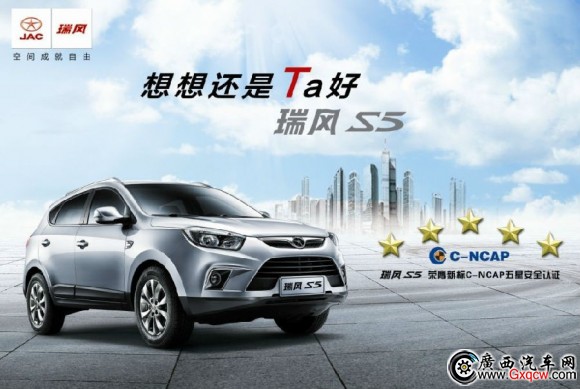 瑞風(fēng)S5是江淮汽車基于第二代平臺(tái)研發(fā)的一款全新車型,配備了高于五星的安全設(shè)計(jì)、高效澎湃的環(huán)保動(dòng)力、高新科技的人性化配置。車身大量采用了高強(qiáng)鋼,完全達(dá)到C-NCAP五星碰撞標(biāo)準(zhǔn),在主動(dòng)安全方面匯集了ESC、TCS、EPS等前沿技術(shù)的運(yùn)用,這些是自主品牌甚至是大部分量產(chǎn)的合資品牌當(dāng)下所沒有的,讓瑞風(fēng)S5凸顯價(jià)值。2.0T、1.5TGDI為主的江淮 “白金傳動(dòng)系”在S5上的成功搭載,使S5的動(dòng)力表現(xiàn)更顯非凡。據(jù)悉,2014年下半年瑞風(fēng)S5將推出1.5GDI款車型,這將為江淮汽車占領(lǐng)SUV市場(chǎng)份額提供更為強(qiáng)大的利器。