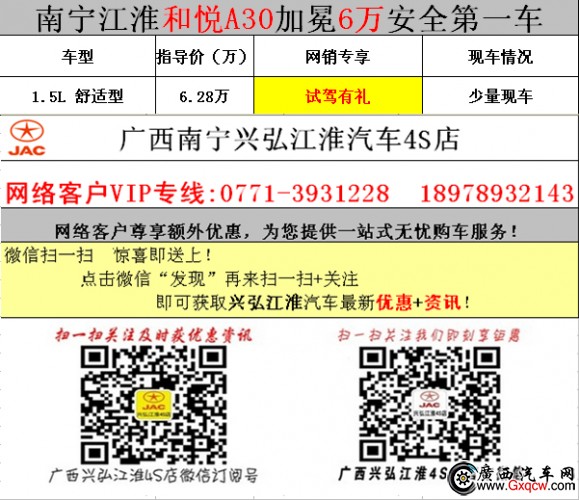 南寧江淮和悅A30現(xiàn)車銷售試駕有禮! 和悅A30是江淮二代乘用車的首款家轎產(chǎn)品,通過了五星安全認(rèn)證,榮獲新價(jià)值中級車稱呼,并加冕6萬安全**車!