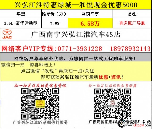 廣西興弘江淮汽車4S店伍月特惠綠城—0771-3931228!