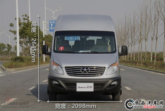 星銳的車身尺寸為:長5990mm、寬2098mm、高2645mm、軸距3570mm、內(nèi)部高度1854mm。由此我們可以看出車身長度已經(jīng)是藍(lán)牌車的極限長度,寬大的車身早就了車內(nèi)的空間和舒適度。