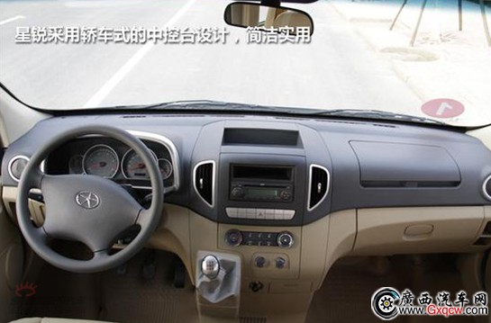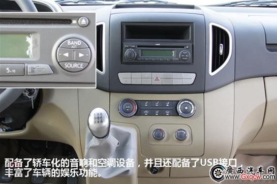 進(jìn)入星銳的車內(nèi),**個感覺就是這款車的內(nèi)飾設(shè)計非常年輕化,整個中控臺的設(shè)計與轎車或MPV并沒有什么區(qū)別,這對駕駛員的舒適性非常有利。而且這款車還配備了轎車化的音響和空調(diào)設(shè)備,并且還配備了USB接口,豐富了車輛的娛樂功能!