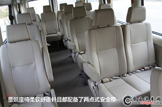 江淮星銳的內(nèi)部高度為1854毫米,即使成年人站在車內(nèi)也不會覺得壓抑。這款客車配備了14個標(biāo)準(zhǔn)座椅,包括駕駛員座椅在內(nèi),所有的座椅都采用真皮材質(zhì)包裹,而且所有的座椅都標(biāo)配了兩點(diǎn)式安全帶,可以保障每一位乘客的乘坐安全。