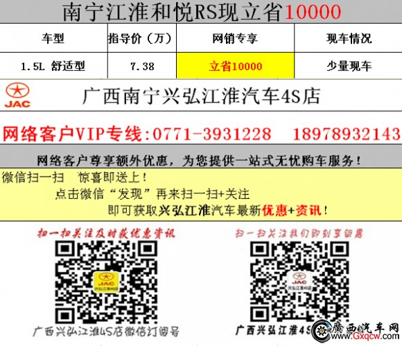 南寧江淮和悅RS力省10000只為您準備!