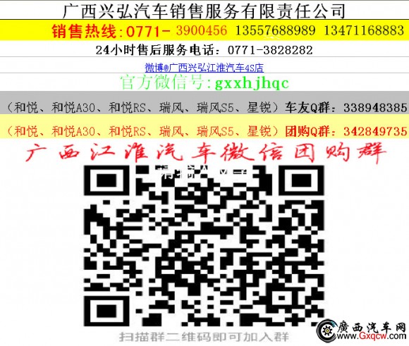 廣西興弘江淮汽車14年廠家特賣會(huì)于11月1日在展廳舉辦! 購(gòu)江淮瑞風(fēng)S系列 到店有禮,現(xiàn)場(chǎng)抽獎(jiǎng)免費(fèi)贏取汽車壹臺(tái)!提前搶先報(bào)名排號(hào)現(xiàn)正火熱進(jìn)行中......詳情請(qǐng)致誠(chéng)網(wǎng)銷部 0771-3900456/ 13557688989 / 13471168883 /(網(wǎng)絡(luò)超前、降價(jià)超前、禮物超前、服務(wù)超前)店址:南寧市秀廂大道35號(hào)(恒大新城對(duì)面)訂車送保養(yǎng),送貓兒山自駕游!