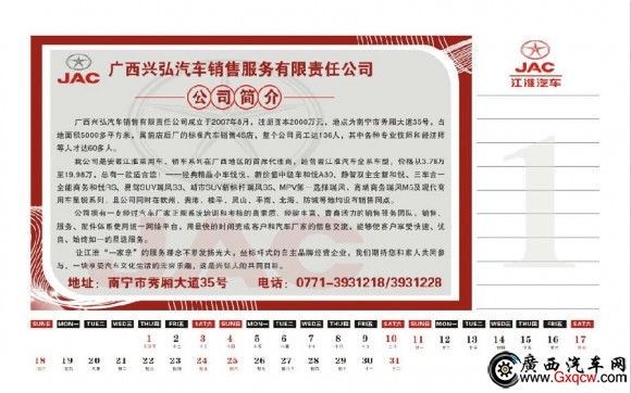 在新年準(zhǔn)備到來之際,到廣西興弘江淮4S店看車,即可免費(fèi)贈(zèng)送一本臺(tái)歷,當(dāng)然,來店購車的客戶,將會(huì)享受到****的優(yōu)惠,虧本賣車,人情在,歡迎加入江淮 “一家親”廣西興弘汽車4S店,買江淮,發(fā)大財(cái)。