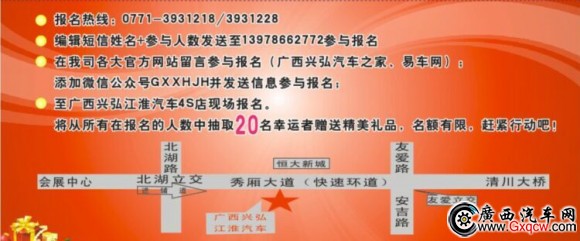 詳詢歡迎到店看車或試駕,銷售負(fù)責(zé)人藍(lán)丹伶:13557688989 / 0771-3900456 / 3931218 / 3931228 一站式服務(wù)一步到位。興弘網(wǎng)銷部(網(wǎng)絡(luò)超前、降價(jià)超前、禮物超前、服務(wù)超前)全新優(yōu)惠政策一享到底,讓您開(kāi)開(kāi)心心把車買回家!,地址:南寧市秀廂大道35號(hào)。
