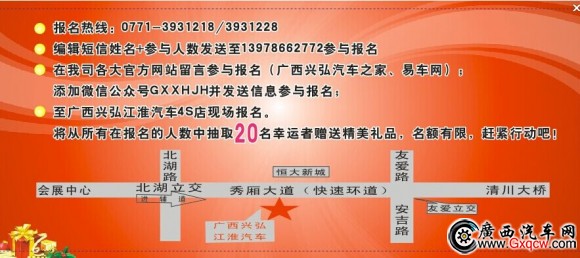 在到來的2015年里,廣西興弘江淮汽車會一直堅持“敬客經(jīng)營”的營銷理念,發(fā)揚“一家親”的服務(wù)傳統(tǒng),履行“主動、專業(yè)、誠信、滿意”的服務(wù)承諾,傾聽您的訴求,捍衛(wèi)您的價值,忠誠服務(wù)不動搖!