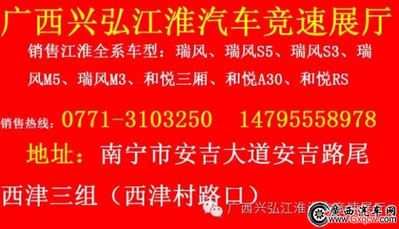 【活動(dòng)地址】:南寧興弘江淮4S店(廣西省南寧市秀廂大道35號(hào) 恒大新城對(duì)面)/ 南寧安吉大道35-1號(hào)/安吉大道西津村路口