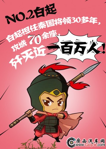 排名第二的是:白起,他可謂真的是常勝將軍,百戰(zhàn)不殆!