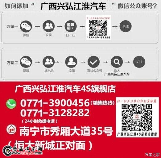 詳詢歡迎到店看車或試駕,VIP銷售熱線:0771-3900456 / 3105599 /3931218 / 3931228 /3101808 /3103250, 24小時售后服務(wù)熱線:0771-3128282一站式服務(wù)一步到位。興弘網(wǎng)銷部,網(wǎng)絡(luò)超前、降價超前、禮物超前、服務(wù)超前,全新優(yōu)惠政策一享到底,讓您開開心心把車買回家,地址:南寧市秀廂大道35號。江淮官方團(tuán)購群:223629006