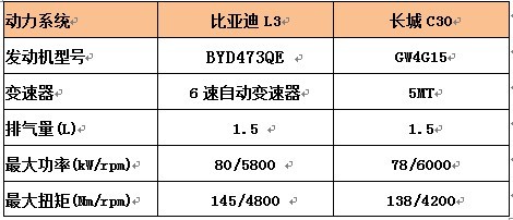 動(dòng)力方面,比亞迪L3配備的是擁有VVL(可變氣門升成)技術(shù)的BYD473QE 全鋁合金發(fā)動(dòng)機(jī), *大功率為80KW/5800 rpm, *大扭矩為145 Nm/4800 rpm,完全能滿足日常需求。而長城C30配備的GW4G15發(fā)動(dòng)機(jī),*大功率78KW /6000 rpm,*大扭矩為138 Nm /4200 rpm,在動(dòng)力上比亞迪L3也要略占優(yōu)勢(shì)。