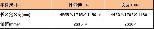 熱門A級(jí)車推薦:比亞迪L3 、長城C30
