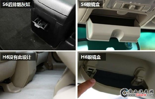 車內(nèi)儲物空間是否豐富體現(xiàn)的是汽車制造商對細(xì)節(jié)的關(guān)注度,代表著車輛研發(fā)制造的人性化水平。得益于SUV大尺寸帶來的寬裕車內(nèi)空間,S6和H6的車內(nèi)儲物空間設(shè)置都很不錯。車門壁儲物槽、中央扶手箱、手套箱、卡盒、眼鏡盒等諸多便利實(shí)用的儲物空間,為駕乘者創(chuàng)造了“隨手放”的可能,但比較起來二者還是有差距。