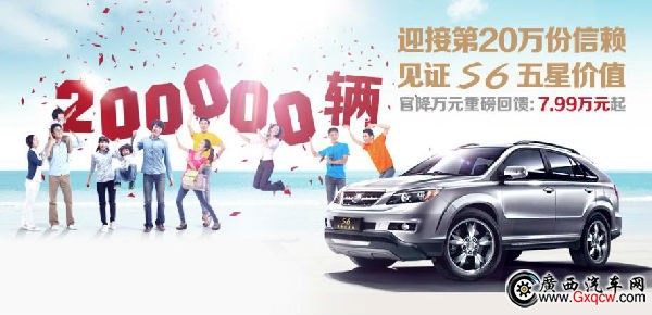 為了感恩用戶,S6不僅官降萬元重磅回饋,2013年10月14日――2014年1月31日到店的顧客還將享受十周年“!倍Y包等十重超值大禮;推薦好友購(gòu)車*高享受千元現(xiàn)金獎(jiǎng)勵(lì);更有Ipad Mini和幸運(yùn)大獎(jiǎng)全程抽取。每天每周每月好禮連環(huán)送,重重驚喜獎(jiǎng)不停。