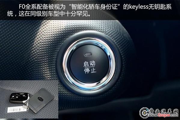 keyless無(wú)鑰匙系統(tǒng)在F0上早已是標(biāo)配,這一次推出的5速自動(dòng)擋車型當(dāng)然也不例外。這一同級(jí)罕見(jiàn)的配置,使得F0的性價(jià)比優(yōu)勢(shì)更為明顯。智能鑰匙的造型和做工都很不錯(cuò),握在手里非常有質(zhì)感,卡片鑰匙則是一個(gè)小驚喜。