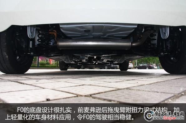 F0的前懸掛使用麥弗遜式獨(dú)立懸掛設(shè)計(jì),后懸掛使用的是拖曳臂附扭力梁式設(shè)計(jì),并包含有前后副車架,這在同級(jí)車中確實(shí)少見(jiàn),也使得F0在行駛時(shí)舒適性和穩(wěn)定性都有不錯(cuò)的表現(xiàn)。