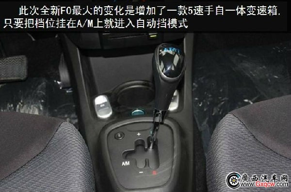 全新F0匹配了5速手自一體變速箱,并配有運(yùn)動(dòng)模式。掛到最左側(cè)A/M擋上即進(jìn)入自動(dòng)模式,加減擋就是AMT中的手動(dòng)模式,同時(shí)在儀表盤(pán)上會(huì)有擋位顯示;由于沒(méi)有P檔,所以停車時(shí)需將擋位掛在N擋位置,這和手動(dòng)擋車型一致。