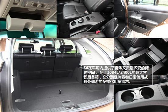 在為消費(fèi)者帶來(lái)舒適的駕乘空間的同時(shí),S6還人性化地設(shè)置了許多便利的儲(chǔ)物空間,配上1084L/2400L的超大容積后備箱,充分滿足消費(fèi)者日常使用或野外郊游的多樣化用車(chē)需求。