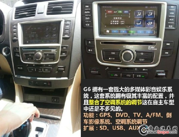 整車配備多處儲物空間,且大部分深度都足夠,前后排均配備水杯架。180cm身高的小編坐進(jìn)去毫無壓迫感,寬松舒適。再看中控臺,2013款G6并沒有對中控區(qū)做出調(diào)整,但是它強(qiáng)大的功能和豐富的配置早已令很多同級車型自愧不如。