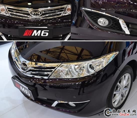 相比老款車型,比亞迪新M6的外觀做了一些小調(diào)整,粗細(xì)搭配的V字型進(jìn)氣柵格造型更突出,大燈銀色電鍍底殼,搭配透鏡讓大燈更具科技感,造型上更加犀利有神,霧燈增加了時(shí)下流行的鍍鉻條裝飾,細(xì)節(jié)上的改動都使新M6更顯時(shí)尚尊貴。
