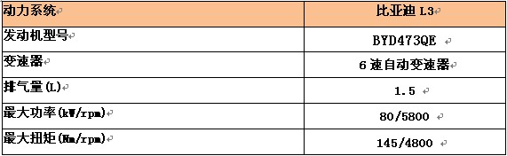 動力方面,比亞迪L3配備的是擁有VVL(可變氣門升成)技術(shù)的BYD473QE 全鋁合金發(fā)動機, *大功率為80KW/5800 rpm, *大扭矩為145 Nm/4800 rpm,綜合工況下百公里綜合油耗最低僅6.2L,并可享受企業(yè)3000元補貼。