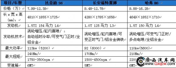 先來看一下三款車在空間和動力方面的配置參數(shù),通過這個數(shù)據(jù)對比可以很清晰的看到比亞迪S6在各個參數(shù)上要優(yōu)于其他兩款。