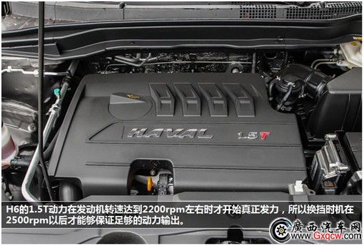 H6的1.5T動(dòng)力帶動(dòng)這1.6噸的車身相對(duì)來說就沒那么輕松了,尤其是在低速行駛下渦輪還沒有介入的時(shí)候。渦輪遲滯相對(duì)明顯的H6在發(fā)動(dòng)機(jī)轉(zhuǎn)速達(dá)到2200rpm左右時(shí)才開始真正發(fā)力,所以換擋時(shí)機(jī)在2500rpm以后才能夠保證足夠的動(dòng)力輸出。