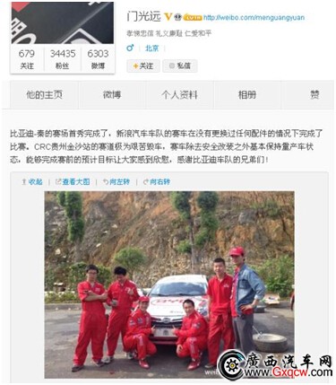 2014年5月17日,中國汽車拉力錦標賽(CRC)首站在貴州金沙點燃戰(zhàn)火。國內(nèi)外眾多知名車隊和車手齊聚金沙,展開了一場激烈爭奪。本站路況十分艱難,近半數(shù)的傳統(tǒng)燃油車退出比賽,而作為混合動力車型組參賽車型,比亞迪秦順利完成首站比賽,其優(yōu)秀表現(xiàn)給廣大車迷們留下了深刻的印象。