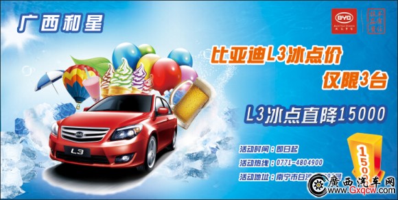 炎炎夏日,剛剛經(jīng)歷了幾場熱火朝天的車展,您是否酷熱難耐了呢?廣西和星比亞迪傾情為您帶來夏日清爽,比亞迪L3夏日冰點價直降15000,活動車型僅限3臺哦,對比亞迪L3感興趣的朋友們趕快出手吧。