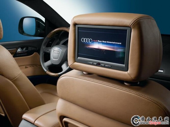 作為百萬元級別的豪華型SUV,奧迪Q7的多媒體配置向來以豪華著稱,而第三代MMI多媒體交互系統(tǒng)則成為2014款奧迪Q7豪華配置中的一大亮點(diǎn),它集合了三維立體導(dǎo)航系統(tǒng)、更加強(qiáng)大的多媒體娛樂功能和更加人性化的操作系統(tǒng),使奧迪Q7成為車主的體貼旅途伙伴。后排座椅娛樂系統(tǒng)包含兩個安裝在頭枕后部6.5英寸LCD顯示屏的顯示器、6碟DVD播放器、兩個耳機(jī)以及拓展娛樂接口,即可播放多種格式的DVD又可以收看數(shù)字電視,讓旅途不再乏味。