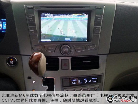比亞迪新M6擁有功能強大的多媒體系統(tǒng),集NAVI導(dǎo)航、360度全景影像系統(tǒng)、藍牙電話、手機音樂、收音機等功能于一體,SDcard、 CD、DVD、USB 、AUX等媒體輸出模式應(yīng)有盡有。令人驚喜的是其配備了電容式8寸觸控數(shù)字屏,不但屏幕大,分辨率高,而且能觀看車載數(shù)字電視。比亞迪新M6車載數(shù)字電視采用的是CMMB制式,信號流暢,覆蓋范圍廣,電視內(nèi)容資源豐富,CCTV5世界杯球賽直播、轉(zhuǎn)播,乘客隨時隨地想看就看。當然,我們在此也提醒大伙,比亞迪車載電視可系統(tǒng)設(shè)置車輛開動時是否顯示電視畫面,建議駕駛員在開車的時候請注意安全,盡量不看電視,以免分散注意力。