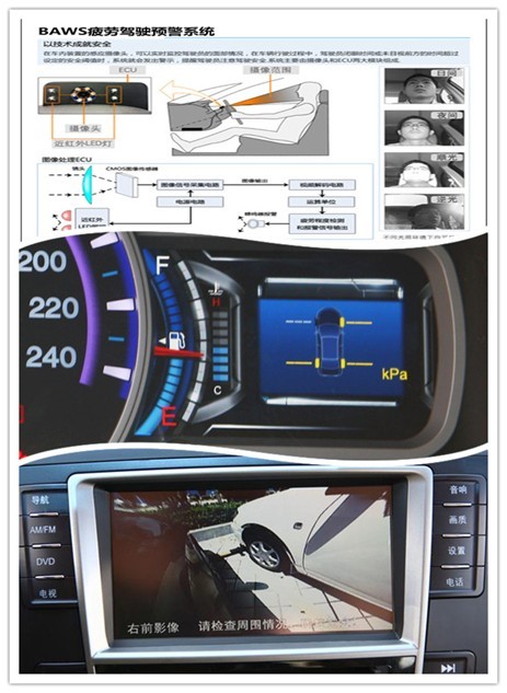 在電子智能配置搭載方面,G6也延續(xù)了比亞迪“多、全、新”的特點。論其電子配置,其中尤以BAWS疲勞駕駛預(yù)警系統(tǒng)及TPMS胎壓監(jiān)測系統(tǒng)、右前輪盲區(qū)顯示三大電子智能裝備最為亮眼。