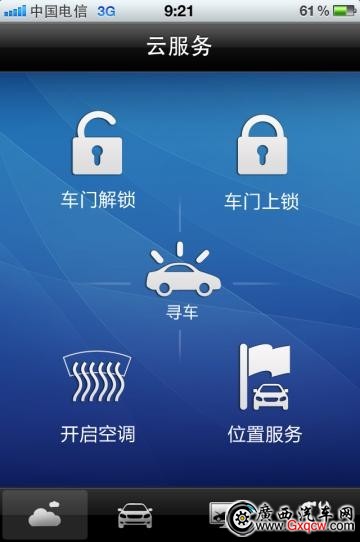 順應(yīng)四網(wǎng)融合的趨勢(shì),比亞迪引入當(dāng)下流行的“云”概念,推出“云服務(wù)”,讓手機(jī)、電腦、車載終端互聯(lián),極大的拓展了車輛的智能功能。手機(jī)云服務(wù)可通過(guò)3G信號(hào)實(shí)現(xiàn)手機(jī)端遠(yuǎn)程車輛控制和車況查詢,極為方便。云服務(wù)的另一特色功能是百度地圖發(fā)送,用戶可通過(guò)手機(jī)或電腦上的百度地圖設(shè)置目的地,直接發(fā)送到車載導(dǎo)航上進(jìn)行導(dǎo)航。據(jù)了解,目前只有比亞迪和寶馬兩家公司可實(shí)現(xiàn)此功能。