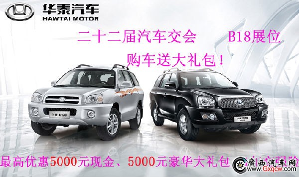 10月17日至20日,第二十二屆汽車交易會在安吉汽車市場火熱開幕,屆時,南寧信義德將攜華泰熱銷車型參展,交易會期間勁爆超低價:購車送五重大禮包!*高優(yōu)惠5000元現(xiàn)金、5000元豪華大禮包、1年交強險、精美禮品、砸金蛋嬴大禮。歡迎廣大客戶蒞臨B18展位或華泰展廳店面賞車購車!