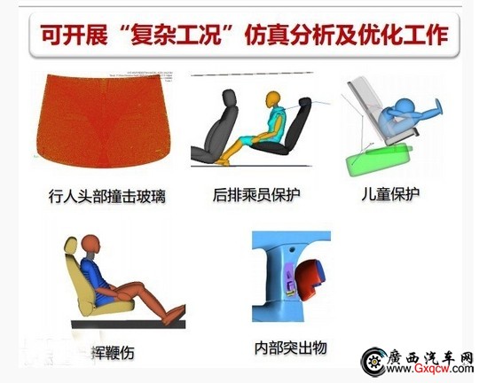 安全仿真不僅僅只局限于車身機(jī)構(gòu)的設(shè)計,可以針對一些“復(fù)雜工況”進(jìn)行仿真分析并優(yōu)化。比如行人頭部撞擊玻璃、后排乘員保護(hù),兒童保護(hù)、揮鞭傷等等。