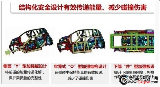 在結(jié)構(gòu)上,瑞虎5側(cè)面采用了“Y”型加強(qiáng)板設(shè)計,將正面碰撞的能量傳遞化解,緩沖撞擊帶來的沖擊,保護(hù)乘員艙的完整性。在乘員艙部分,瑞虎5采用了牢籠式“O”型加強(qiáng)結(jié)構(gòu),在側(cè)面碰撞中保持能量的有效傳遞,減少碰撞的傷害。另外,瑞虎5在車身的下部采用了“井”字形的加強(qiáng)板設(shè)計,提升下部車身剛度,將懸架作用力均勻、有效傳遞至上部車身,提升操控的穩(wěn)定性。