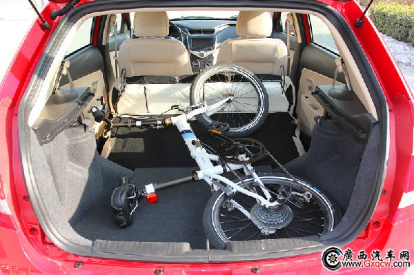 接下來我們將新風(fēng)云2的后備箱整體放倒,看看它的載物情況。后排整體放倒后,新風(fēng)云2的后備箱空間充分?jǐn)U展,將折疊式自行車打開,即便車長150cm,但放進(jìn)去絲毫沒有問題。之前有網(wǎng)友說風(fēng)云2能裝下109L兩門冰箱?磥硪膊皇强昭▉盹L(fēng)。