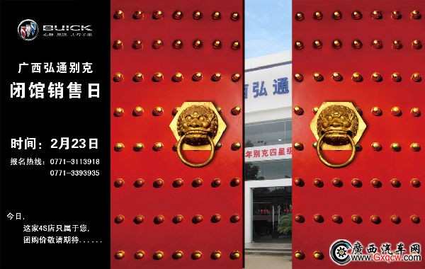 據(jù)編輯了解,安吉弘通別克將在2月23日周六下午(14:00-17:30)舉行2013年新春閉館團(tuán)購(gòu)會(huì),觸底團(tuán)購(gòu)價(jià)格現(xiàn)場(chǎng)公布,有史以來(lái)從沒(méi)有過(guò)的優(yōu)惠,您怎能錯(cuò)過(guò)!趕緊報(bào)名吧!