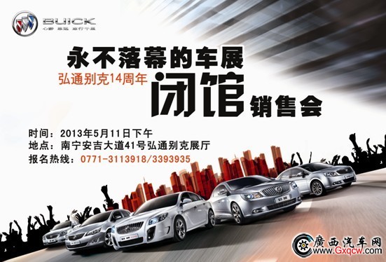 5月11日下午14:00弘通別克4S店特推出“永不落幕的車展―閉館銷售會(huì)”,將延續(xù)安吉車展優(yōu)惠政策,購(gòu)車千元豪華大禮相送。2013全新別克君越3.0L旗艦版已到店,歡迎廣大車友預(yù)訂購(gòu)車!弘通別克讓您即刻擁有心中座駕, 別人尚在夢(mèng)想,您已自如駕馭夢(mèng)想……