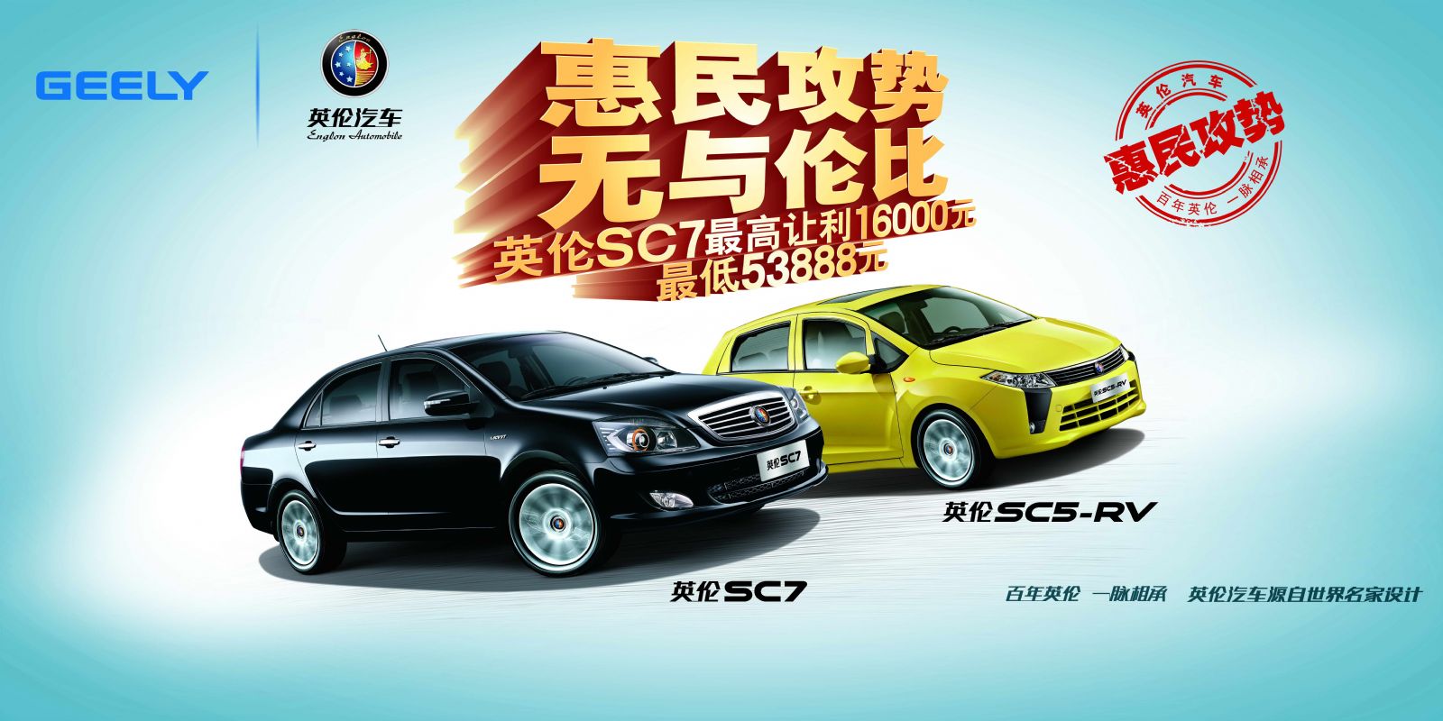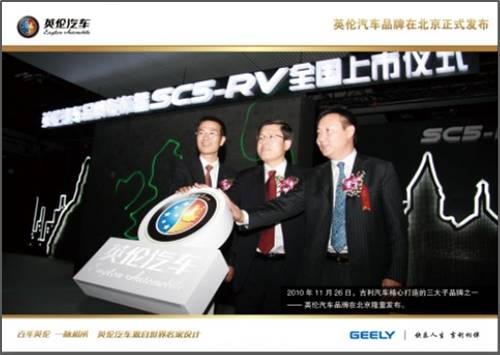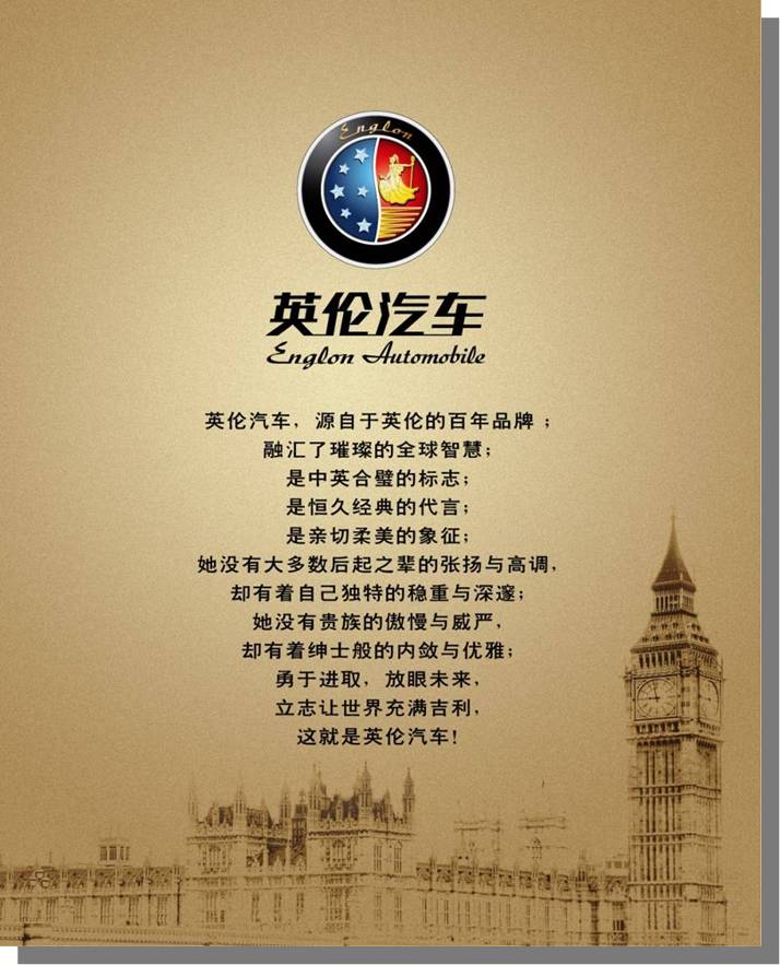 作為一個體現(xiàn)家庭關(guān)愛、社會和諧的品牌,英倫汽車的產(chǎn)品也均圍繞著品牌內(nèi)涵,傳遞品牌。主力車型英倫SC7以大氣外觀、從容空間、豐富配置為賣點,針對有商務(wù)需求的家庭;金剛面向精打細算的工薪階層,主打晶鉆外觀、寬敞空間和理想油耗;力求個性、喜歡玩樂的年輕家庭則可以選擇金鷹CROSS,融合SUV的粗獷與轎車的精巧,空間多變、通過性強;SC5-RV則是針對年輕消費者推出的時尚兩廂車,具有名家設(shè)計的潮流外觀、越級的豐富配置。