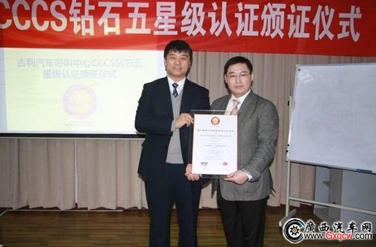 繼2009年10月通過CCCS客戶聯(lián)絡(luò)中心標(biāo)準(zhǔn)五星級認(rèn)證后,經(jīng)過兩年的努力,吉利汽車呼叫中心于2011年12月成功通過CCCS客戶聯(lián)絡(luò)中心標(biāo)準(zhǔn)鉆石五星級認(rèn)證,并于2012年1月在吉利汽車呼叫中心舉行了頒獎儀式,吉利汽車成為**獲獎的自主品牌車企。