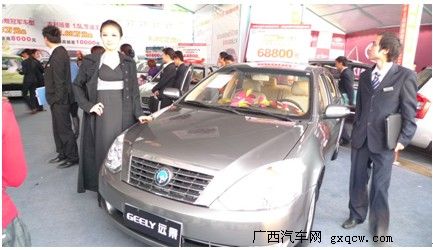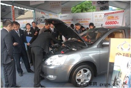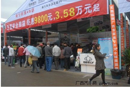 4月15日上午,2010年廣西汽車交易會(huì)在廣西汽車市場(chǎng)盛大開幕,開展首日,現(xiàn)場(chǎng)就刮起了一股“自主”旋風(fēng),自主品牌車吸引了不少觀眾的眼球,特別是剛收購了沃爾沃的吉利,展臺(tái)更是人頭攢動(dòng)。
