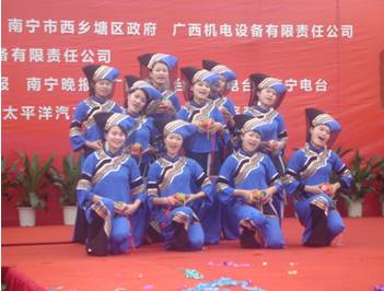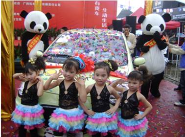 4月17日中午,南寧開河在安吉車展現(xiàn)場(chǎng)舉辦了遠(yuǎn)景豪華智能導(dǎo)航版和熊貓“愛(ài)她”版的新車上市活動(dòng),編者一早就來(lái)到了活動(dòng)現(xiàn)場(chǎng),只見舞臺(tái)兩邊早已停放了兩部蓋上了紅斗篷的新車,一個(gè)壯鄉(xiāng)風(fēng)情的繡球舞拉開了上市活動(dòng)的序幕。