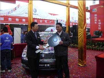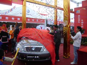 吉利集體華南大區(qū)負(fù)責(zé)人陳總與新車車主共同揭幕