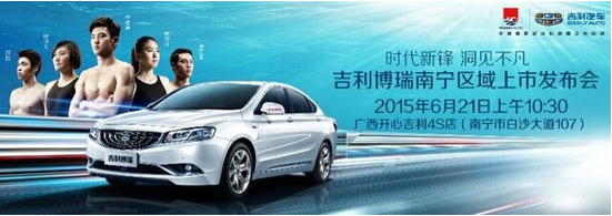2015年6月21日周日上午9:30,汽車之家將與廣西開心吉利旗艦店在展廳內(nèi),聯(lián)袂舉辦吉利博瑞廣西區(qū)域上市發(fā)布會,活動當(dāng)天有各式冷餐點心,還有禮品拿哦,讓我們一起體驗這個活動盛會吧~~