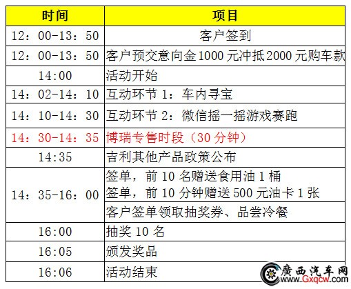 1、報名禮:報名預交意向金1000元,到場參與活動,即可沖抵2000元購車款(博瑞車型不參與);
