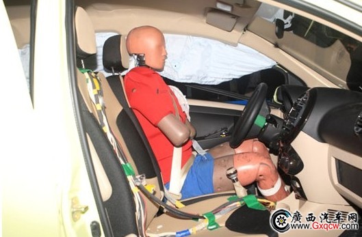 記者在碰撞試驗現(xiàn)場看到,以50公里時速正面碰撞的EC7前引擎蓋翹起,水箱和防撞鋼梁都已經(jīng)潰縮,達(dá)到了很好的吸能效果。而再仔細(xì)看看發(fā)動機(jī)和變速箱,卻已經(jīng)沉降至車身底部,并沒有沖入駕駛艙,車內(nèi)前座試驗假人的腿部空間完全沒有被壓縮。